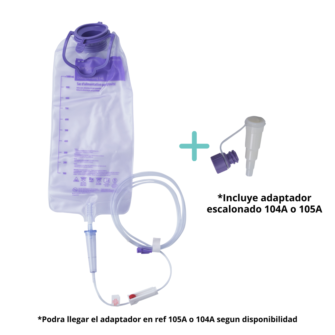 La bolsa de alimentación kangaroo esta diseñado para alojar y transportar nutrición enteral mediante gravedad y su conexión a una sonda, a través de la cual se suministra la nutrición al paciente, apto para utilizar con alimentos pre envasados o latas de alimentación por gravedad. Cuenta con punta para empate tipo *ENFit específico para su uso exclusivamente con fines de nutrición enteral.
