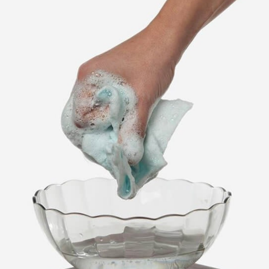 - Deslice el paño jabonoso como una esponja, frotando en círculos sobre la piel generando espuma.