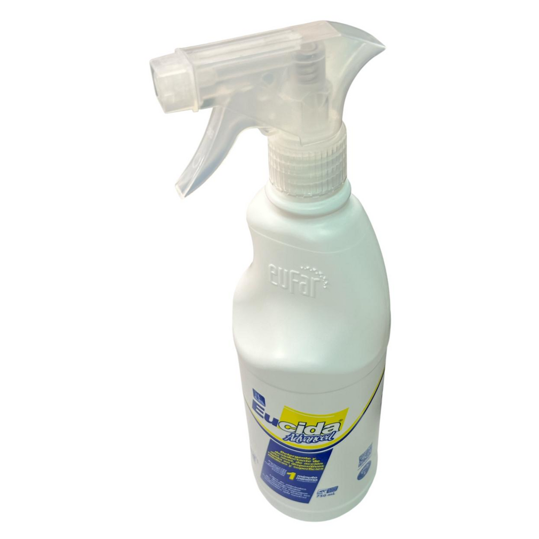 Eucida Advanced elimina el 99.9% de bacterias, virus y hongos en solo 1 minuto. Ideal para superficies médicas, equipos y mobiliario. Seguro, eficaz y de amplio espectro.