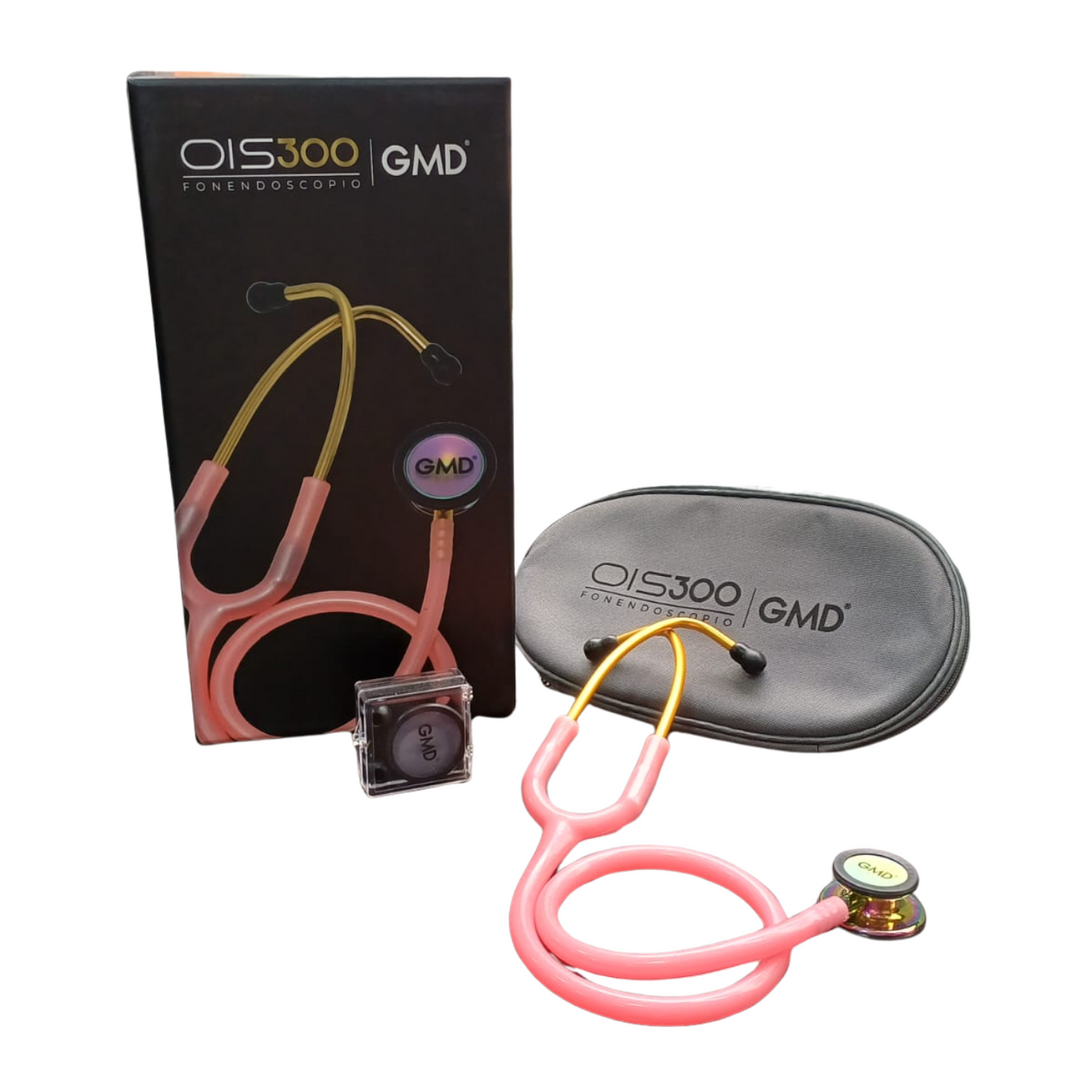 El fonendoscopio OIS 300 Rosado Brillante es un instrumento de diagnóstico médico para auscultación de sonidos cardíacos, pulmonares y otros sonidos corporales.