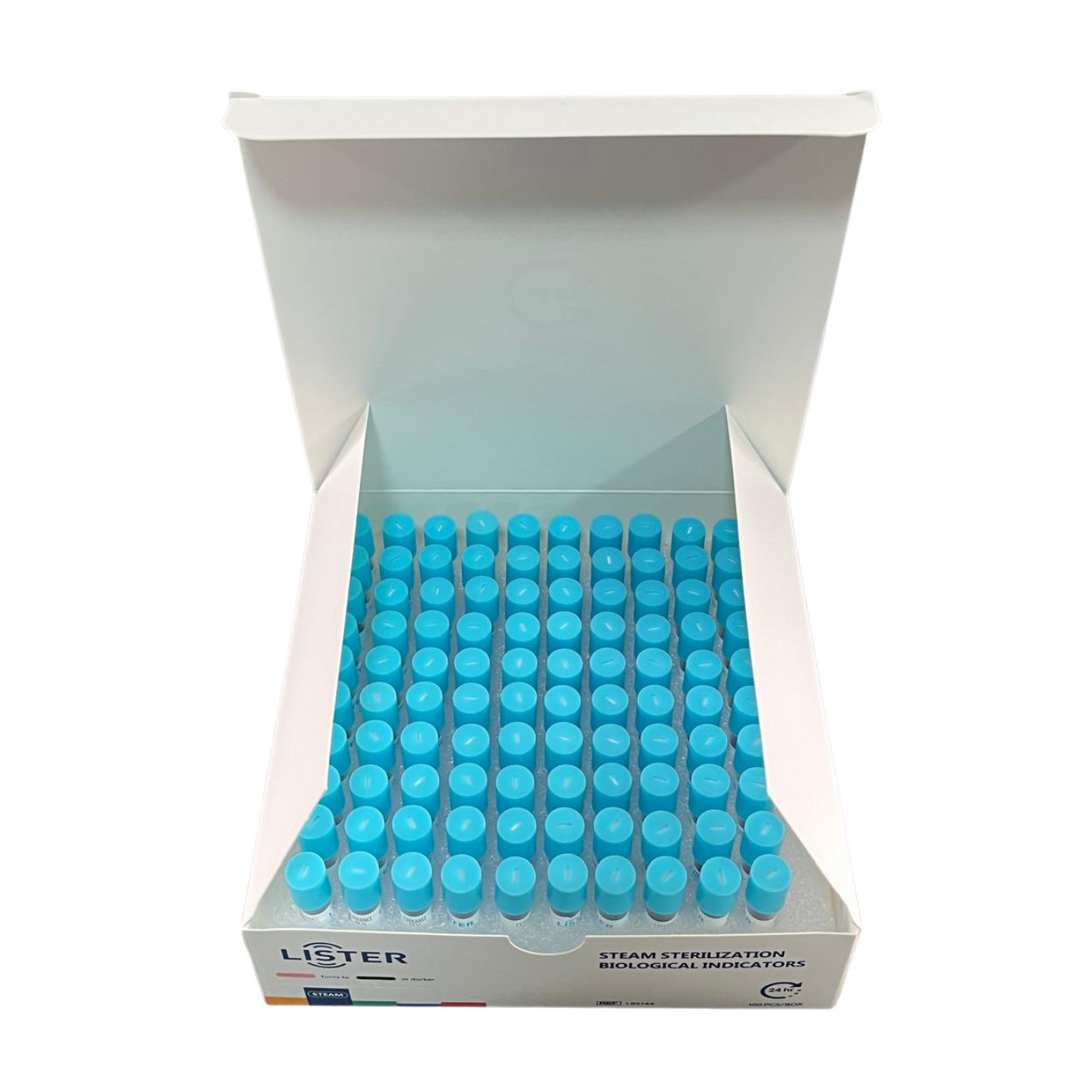 Indicadores biológicos diseñados para validar la eficacia de los ciclos de esterilización por vapor en autoclaves. Contienen esporas de Geobacillus stearothermophilus, microorganismo termorresistente utilizado como estándar biológico para este tipo de control. Permiten la lectura del resultado en un periodo de incubación de 24 horas.