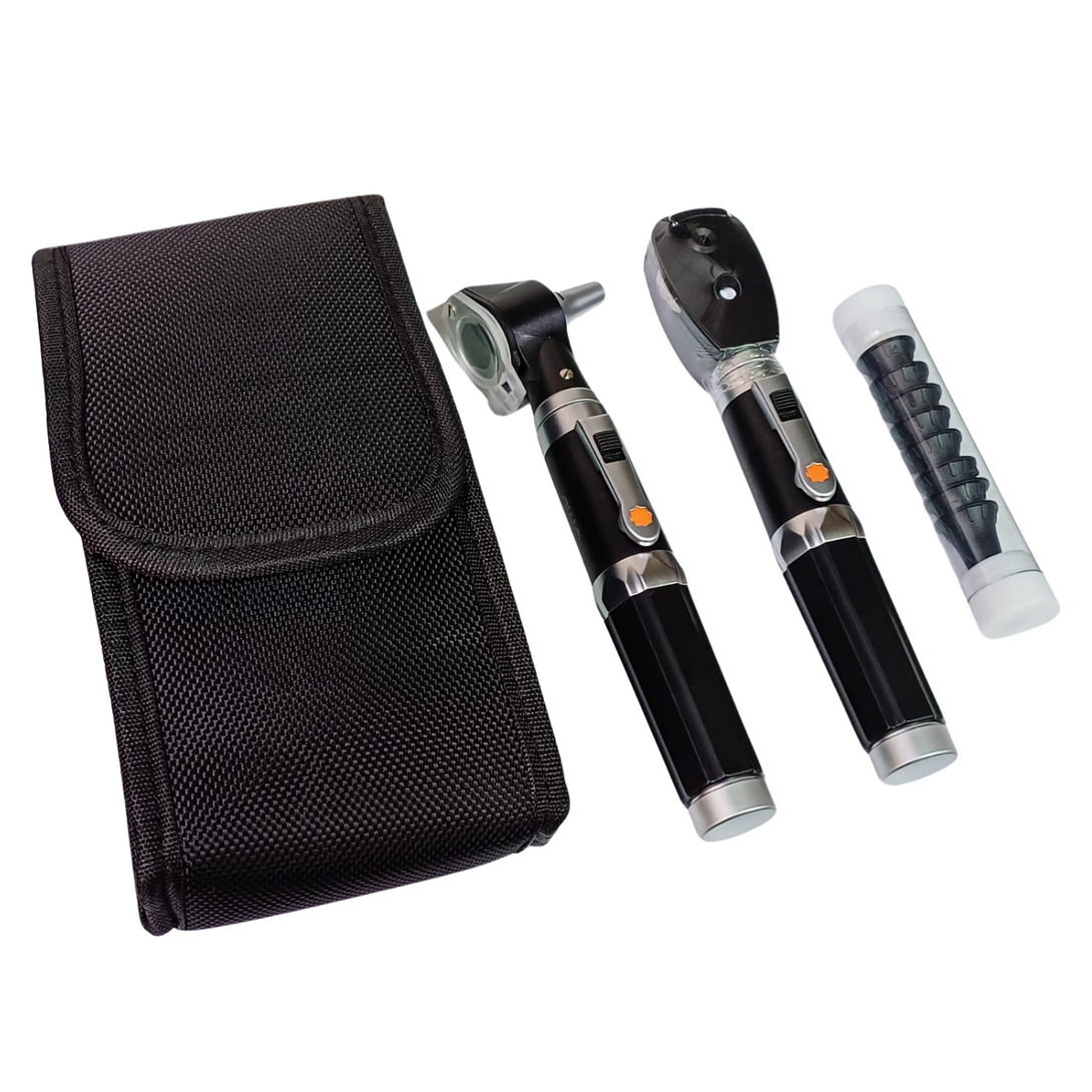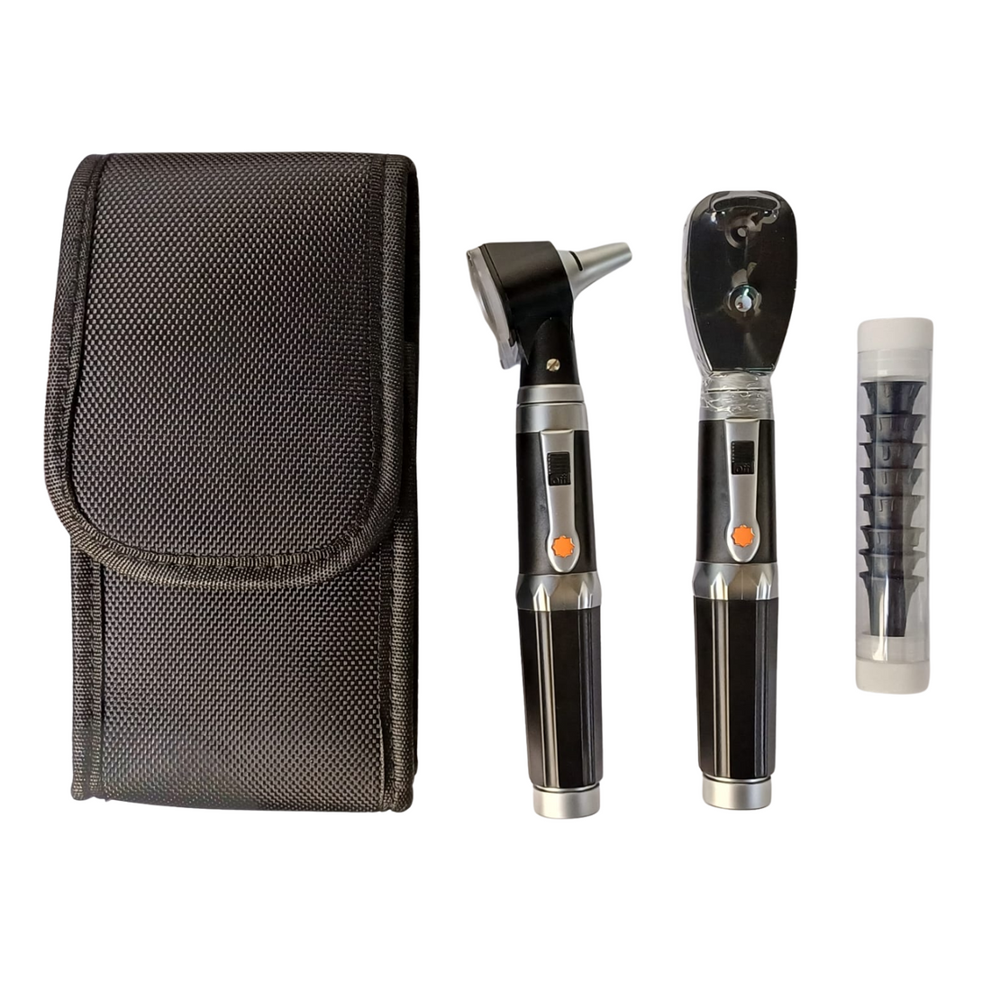 Contenido | 2 bases (mangos), 2 cabezales: uno de otoscopio, otro de oftalmoscopio. |