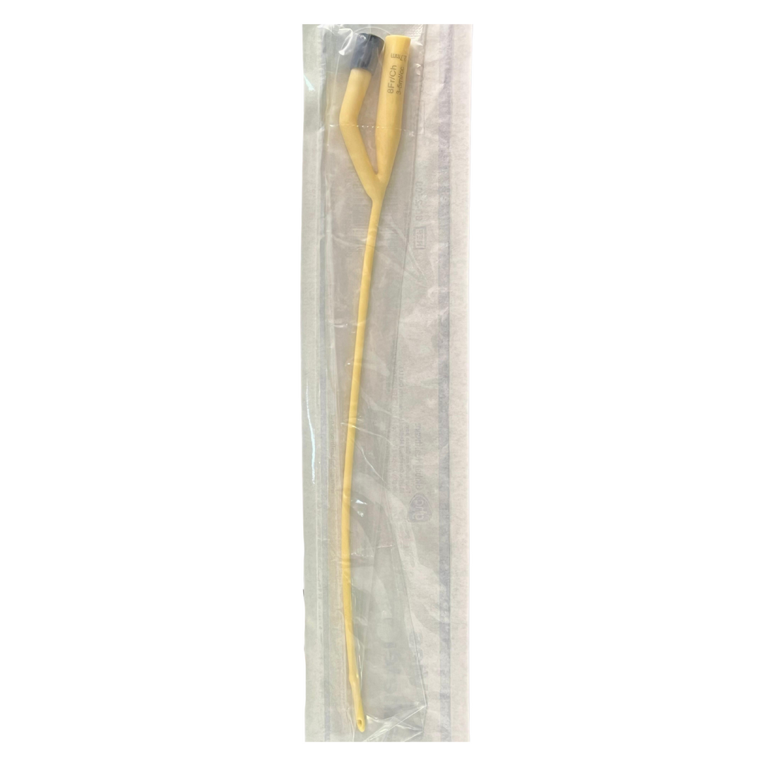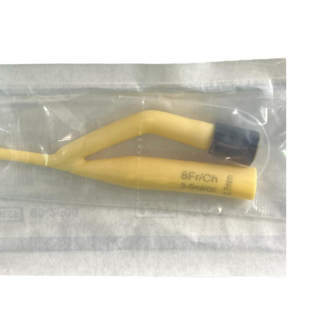 Sonda vesical estéril, de un solo uso, fabricada en látex natural con recubrimiento siliconado. Dispone de dos canales: uno para el drenaje urinario y otro para el inflado del balón de retención, que mantiene la sonda en su lugar dentro de la vejiga.