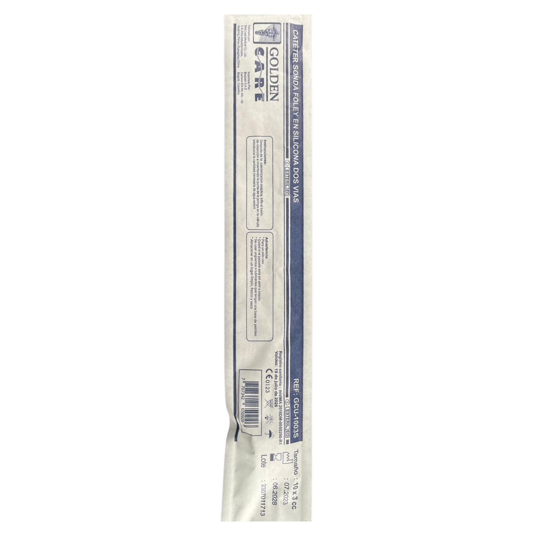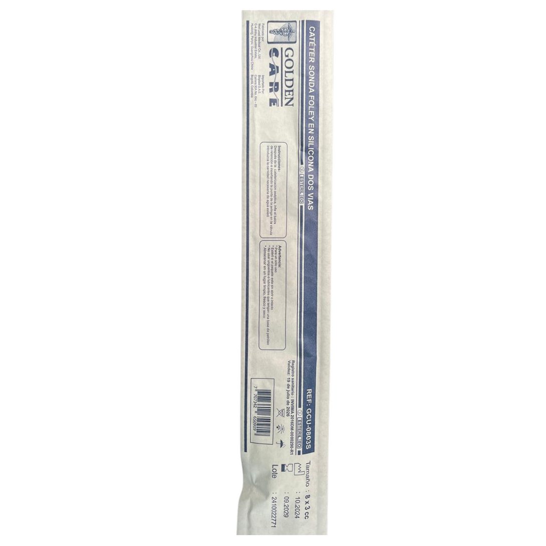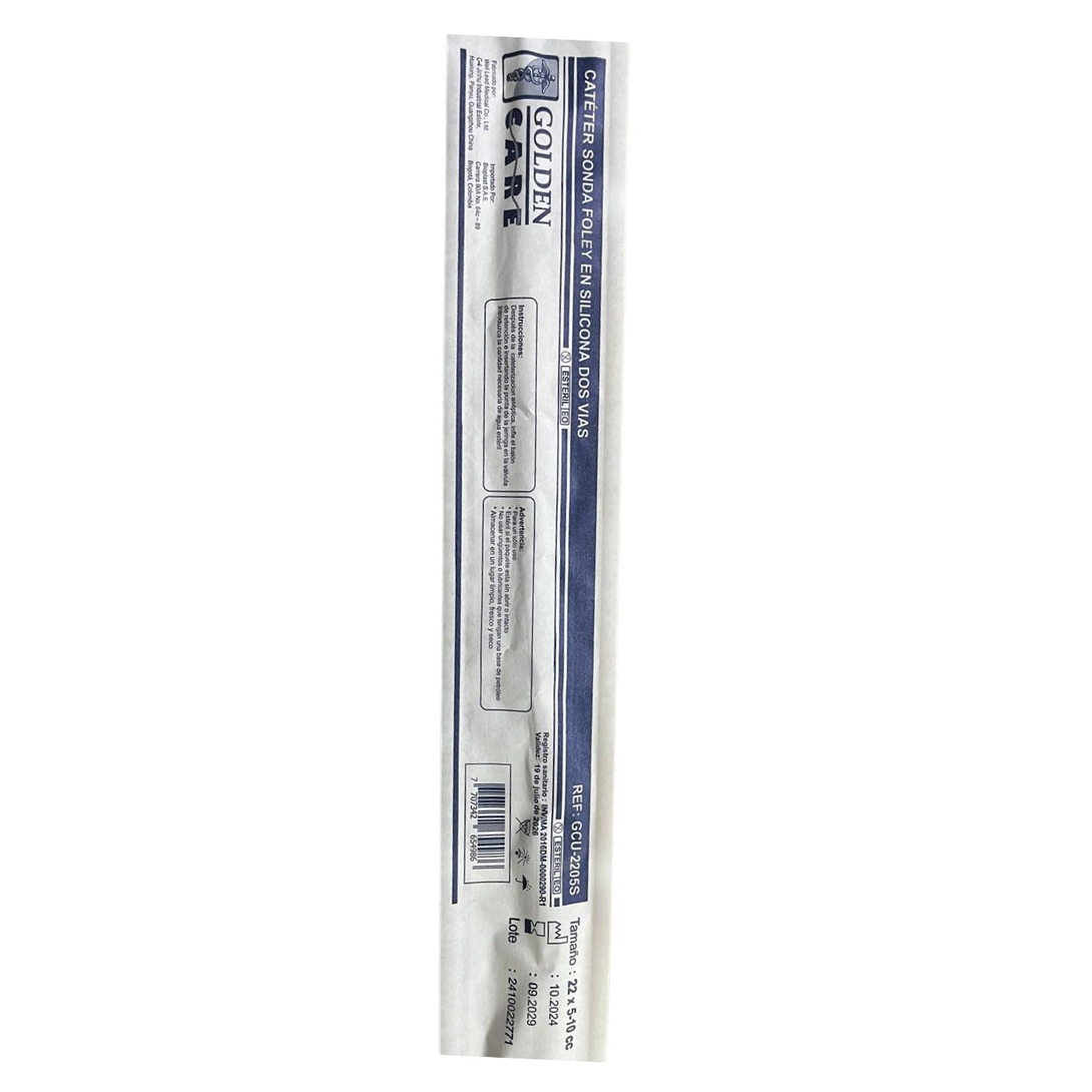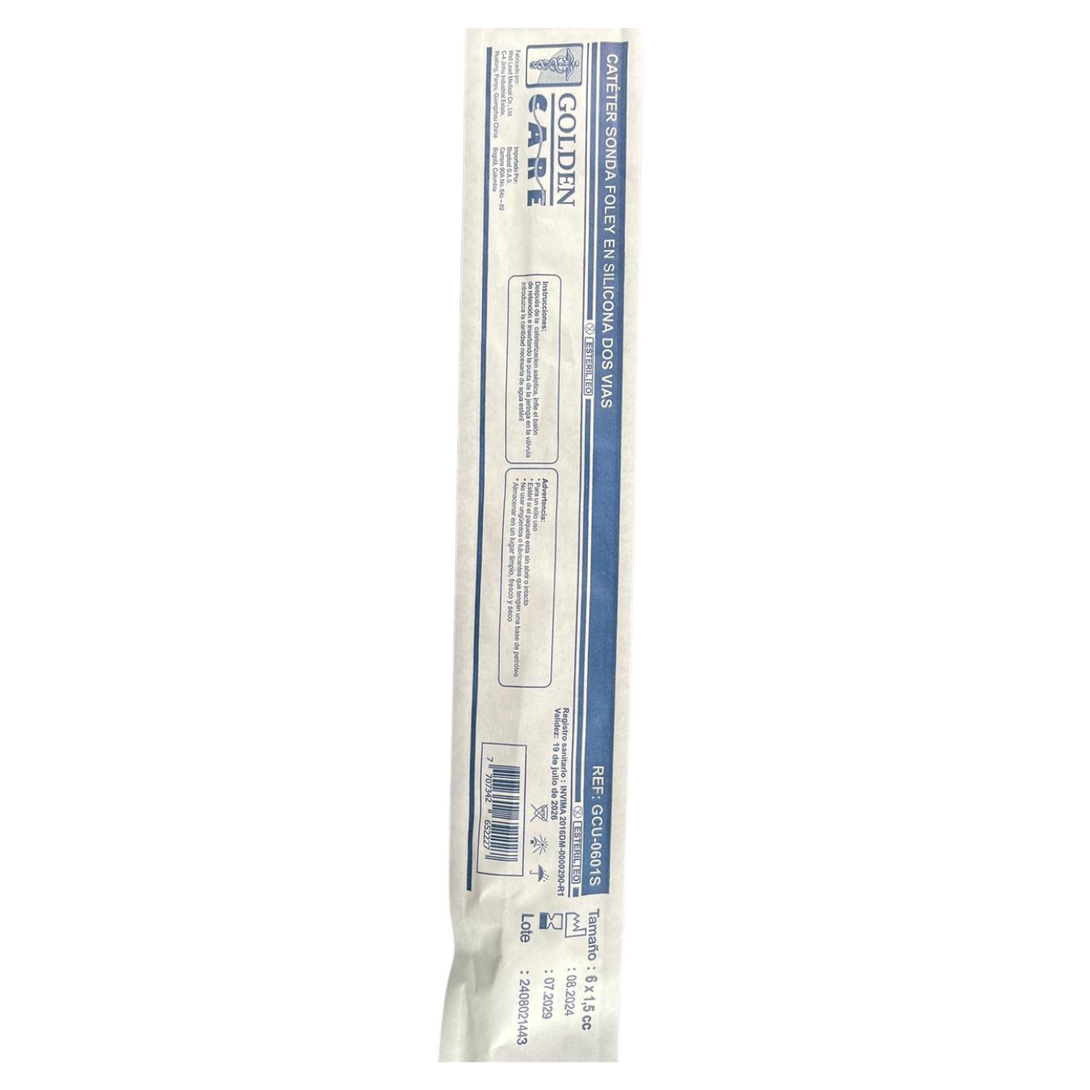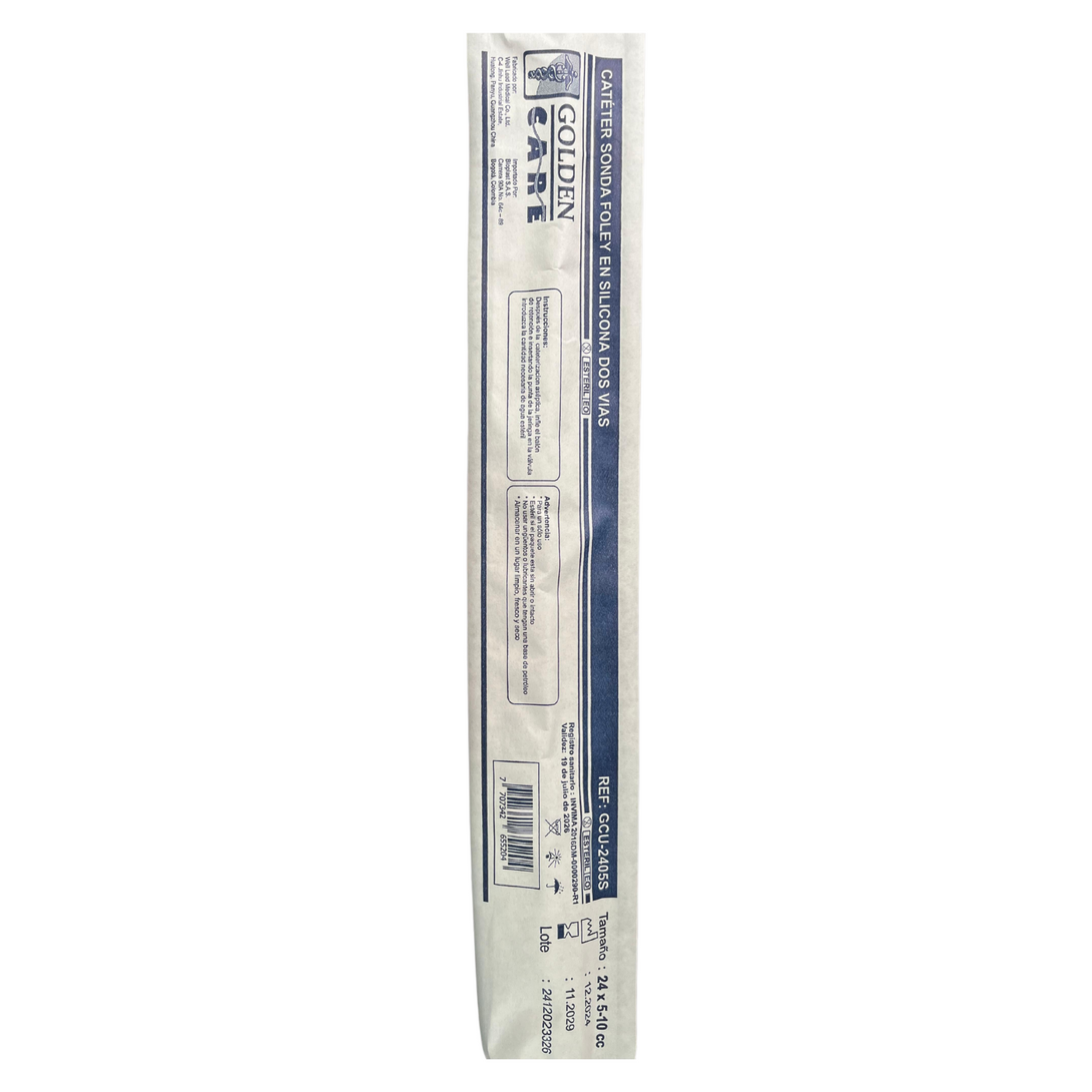 Sonda vesical estéril de dos vías, fabricada en silicona 100%, indicada para cateterización urinaria en procedimientos de corta o larga duración. Su material proporciona alta biocompatibilidad, minimizando reacciones alérgicas y reduciendo el riesgo de incrustaciones.