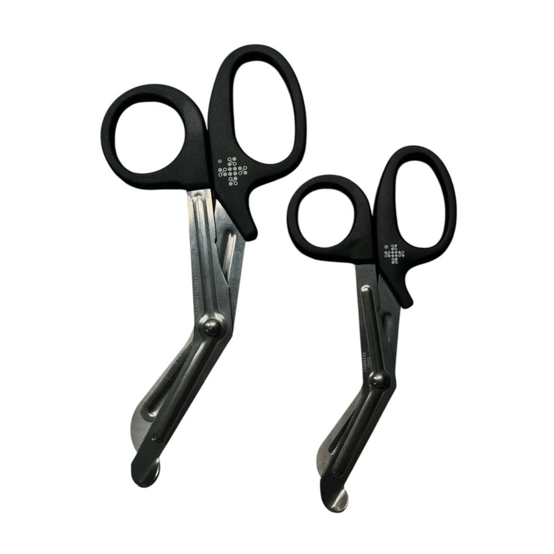 - Material de las hojas: Acero inoxidable resistente a la corrosión, con filo microdentado que permite cortar materiales duros como ropa, vendajes, cinturones de seguridad y textiles hospitalarios.