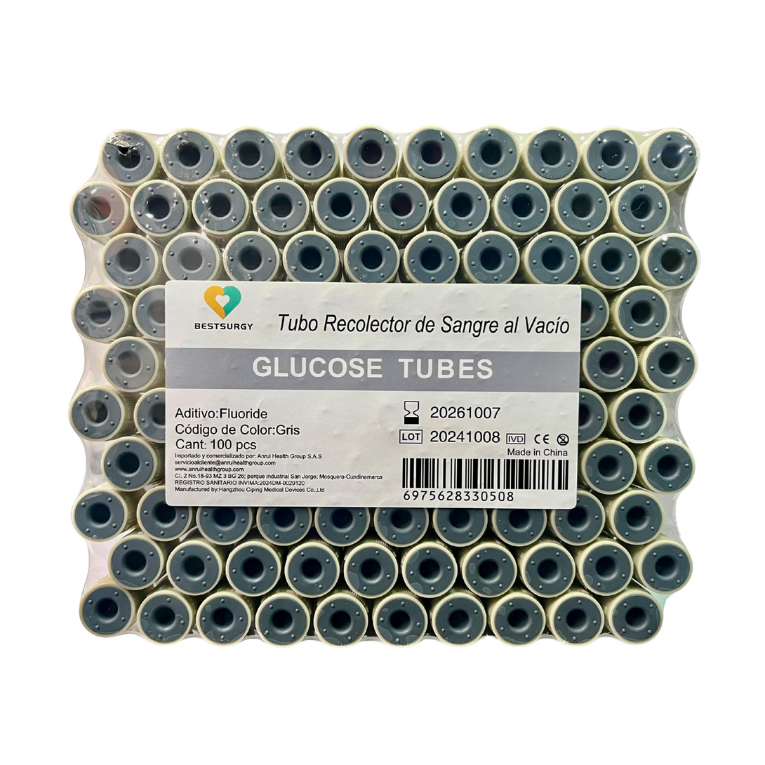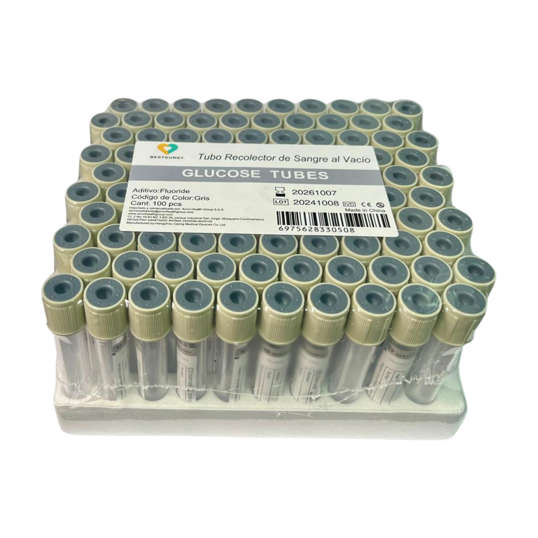 El tubo recolector de sangre con tapa gris de la marca BESTSURGY contiene aditivos de fluoración y heparina sódica, que permiten conservar la muestra sanguínea inhibiendo la glicólisis y anticoagulando simultáneamente. Es adecuado para pruebas de glucosa, lactato y otras determinaciones bioquímicas en laboratorio.